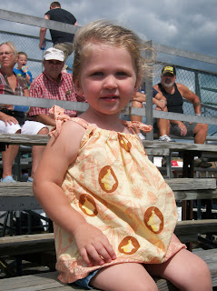 We watched the lawn mower tractor pulls. Doesn't Natalie look pretty in her shirt. It's made by